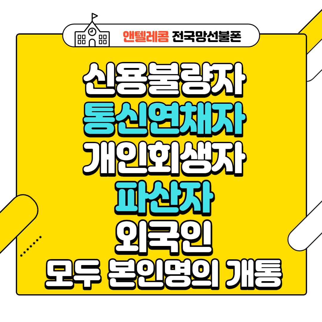 또한 통신사에 연채중이여도 본인 명의로 개통해서 사용 가능하고요. 개인회생자, 파산자, 외국인 모두 본인명의로 개통해서 사용 할 수 있습니다!