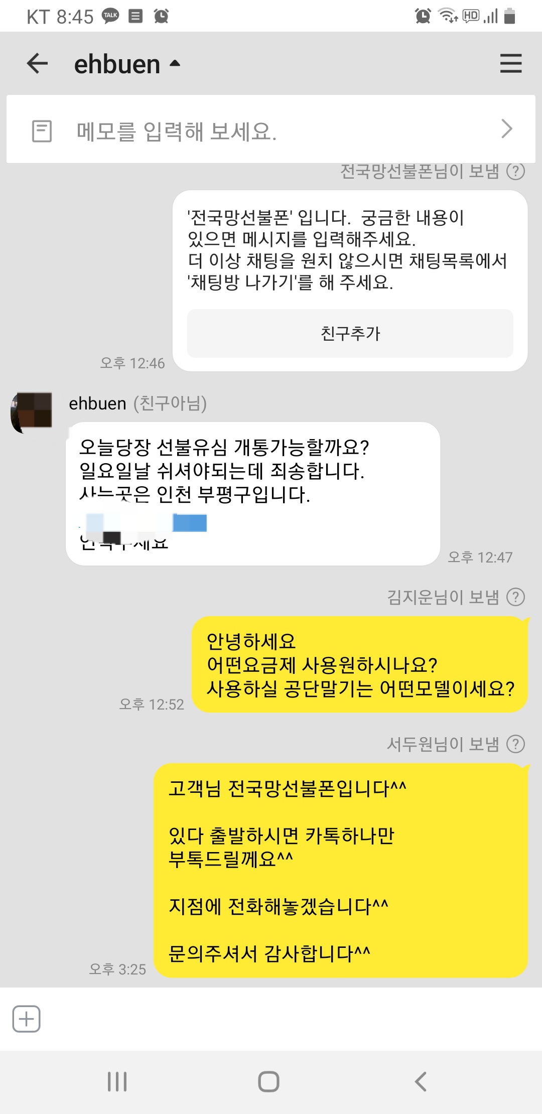 안녕하세요! 전국만모바일 팀장 서두원입니다. 오늘은 고객님께서 급하게 주말에 핸드폰을 개통해야한다면서 연락을셨는데요!! 당연히 빠르게 상담드려서 마무리해드렸습니다!!