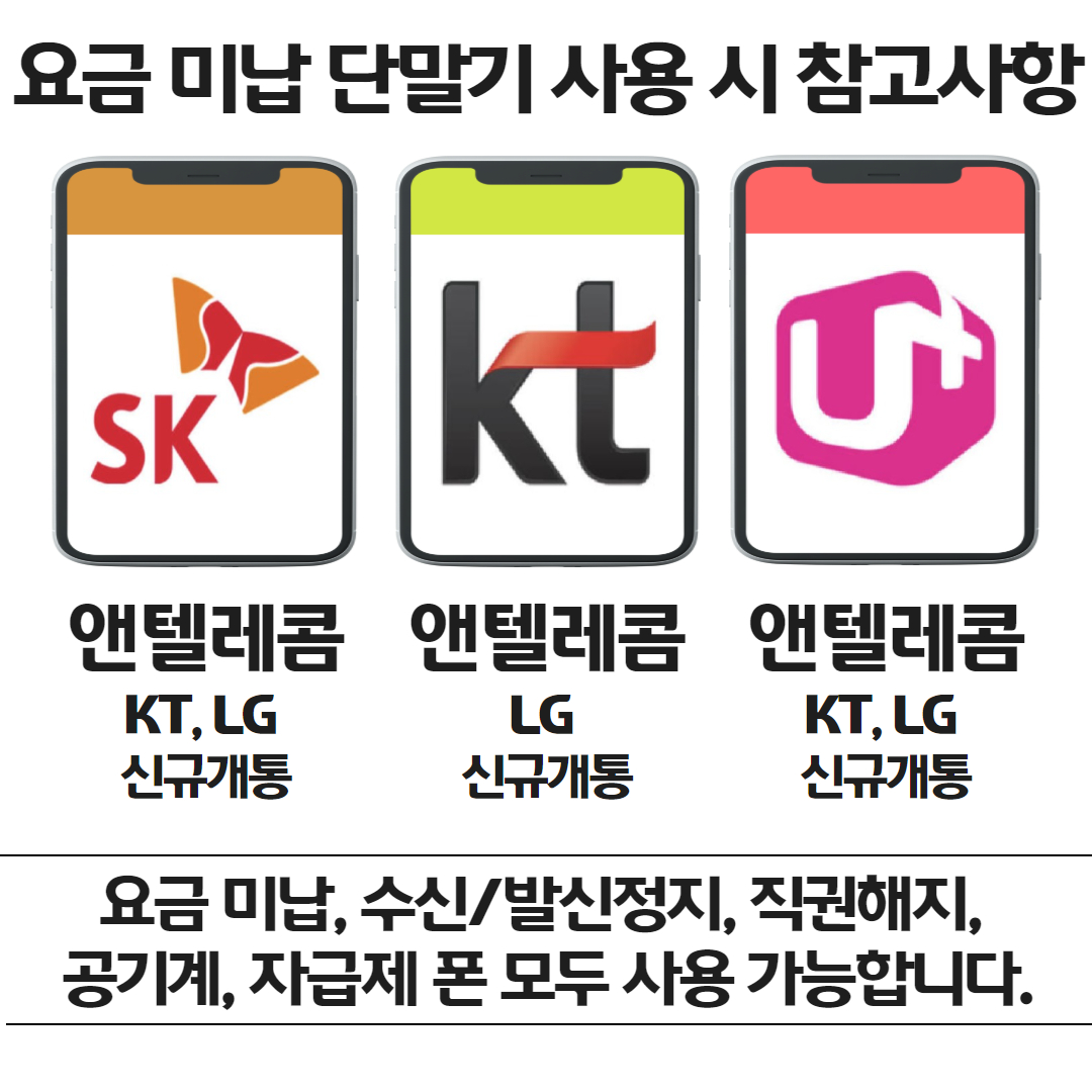 이밖에 공기계, 직권해지 폰, 수신/발신정지 핸드폰까지 모두 사용 가능합니다. 이 부분은 아래 상담 신청해주시면 상세히 설명드리겠습니다!!