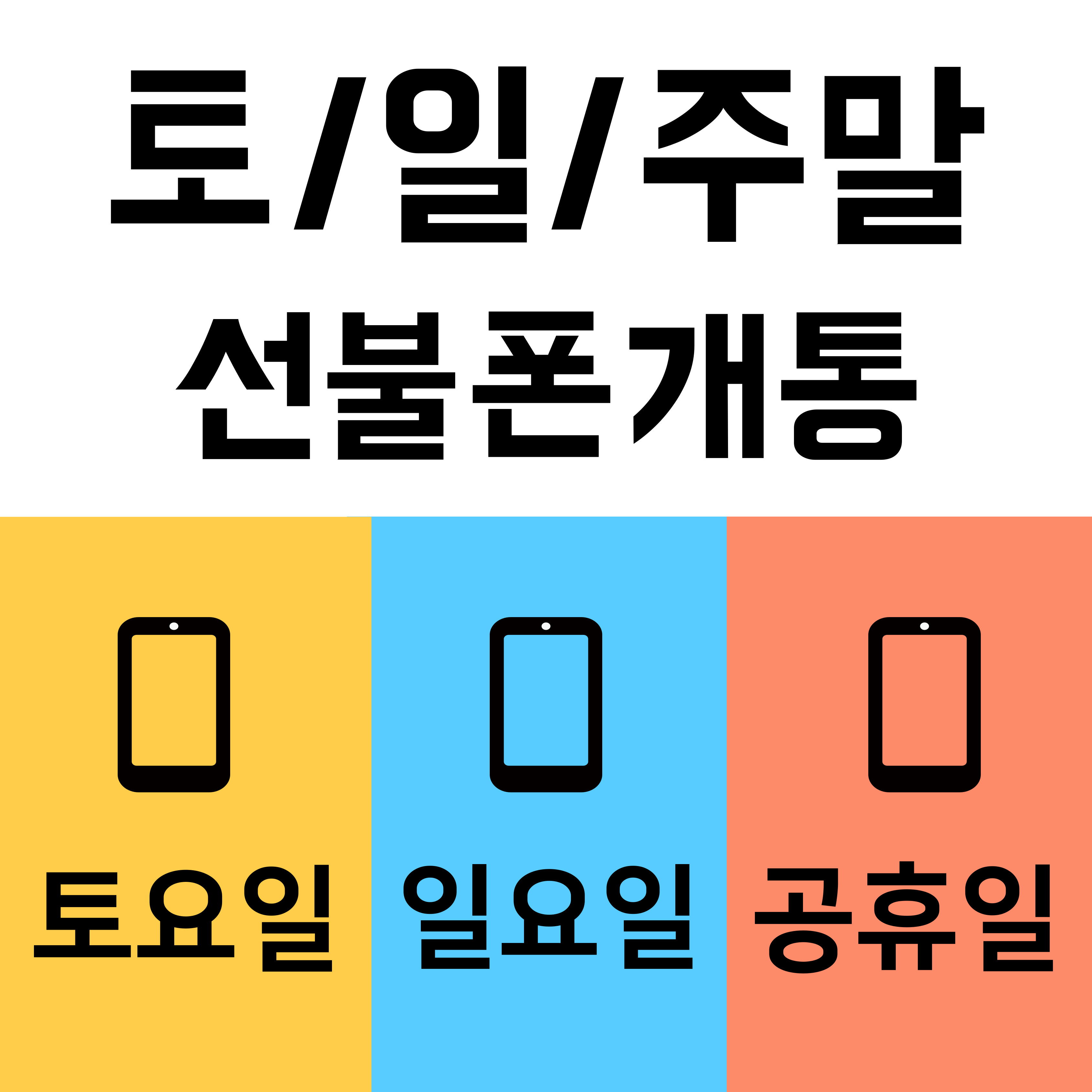 토요일, 일요일 주말 핸드폰 개통 선불폰 개통 저만 믿으세요!