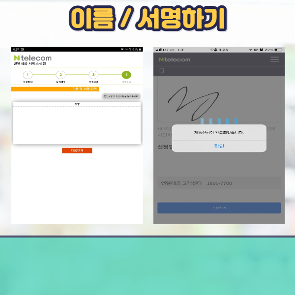 이름과 서명을 모두 마치셨다면 꼭 결과를 통보해주세요!! 접수하신 후 아무런 통보를 하지 않으시면 제가 확인할 때까지 무한정 기다리셔야지 됩니다. 이렇게 되면 고객님도 불편하시고, 저도 너무 죄송하기 때문에 꼭!!!!!!!!!! 신청이 완료되면 저에게 카톡이나 카카오 채널 혹은 전화로 결과를 알려주세요!! 그러면 확인과 동시에 5분 이내로 개통 승인을 진행해드리겠습니다!!