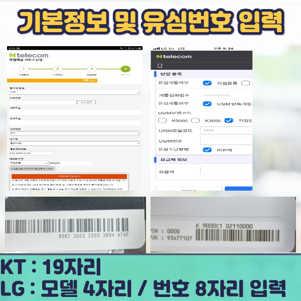 다음은 유심 번호를 입력해주시면 됩니다. kt선불유심은 19자리를 입력해주시고, lg선불유심은 모델번호 4자리와 유심번호 8자리를 입력해주시면 됩니다.