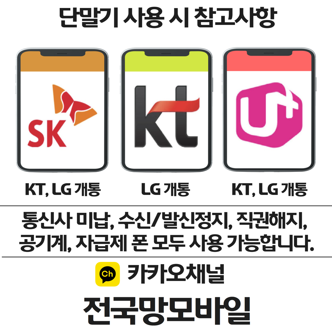 또한 연채/미납 핸드폰, 직권해지가 된 핸드폰, 자급제폰, 공기계, 중고폰 모두 그대로 사용 할 수 있습니다. 이점은 참고해주세요!!