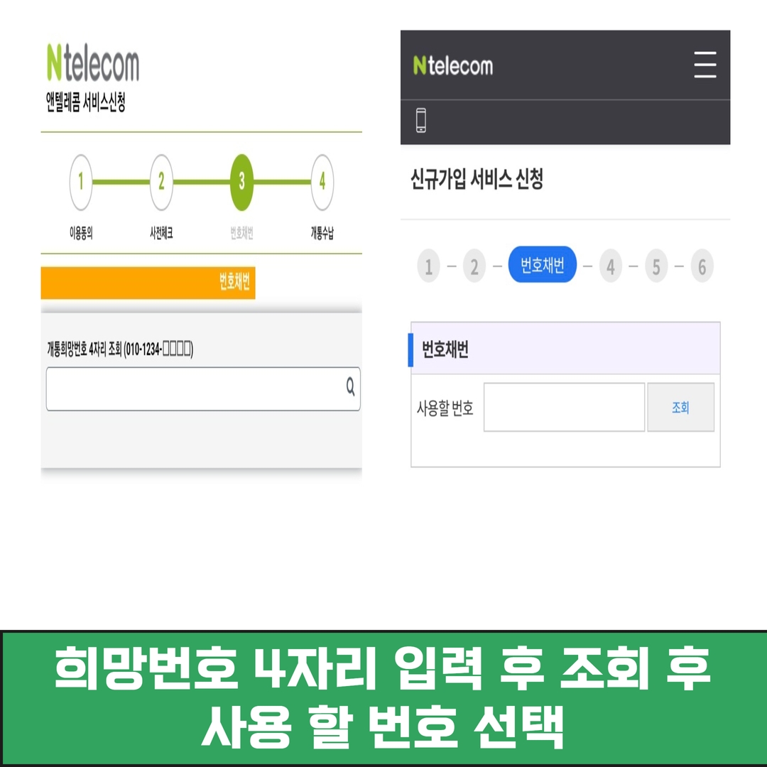 희망번호 4자리를 입력하는데, 사용하고 싶은 뒷 4자리를 입력하신 후 조회를 누르면 가운데 번호는 랜덤으로 생성이 됩니다. 여기서 사용하고 싶은 번호를 선택하시면 됩니다!