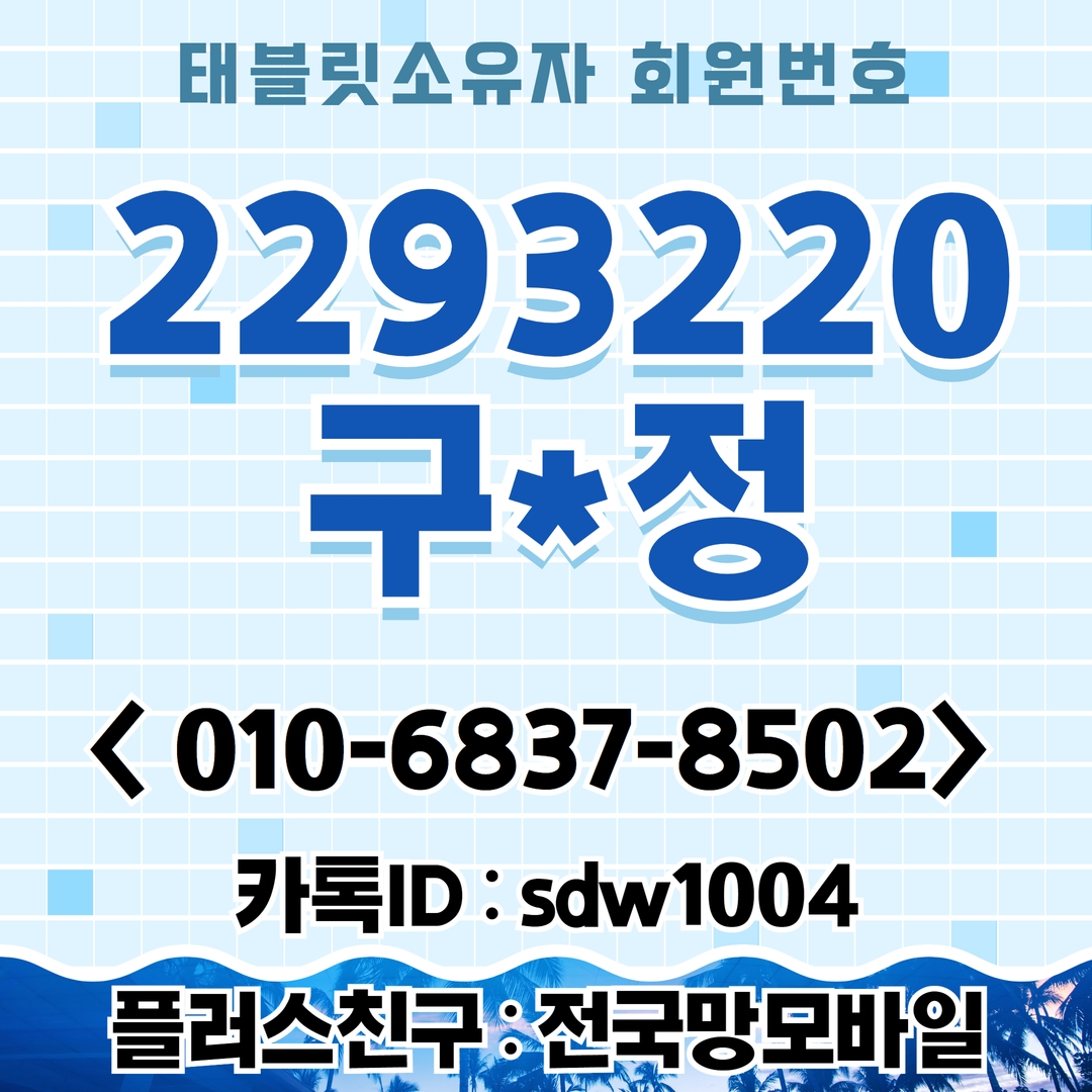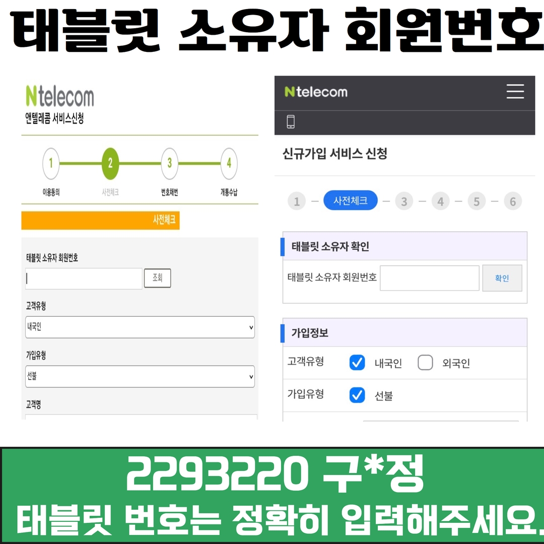 다음은 태블릿 소유자 회원번호를 입력하는 란이 보이실 겁니다. 여기서 2293220를 입력 후 확인을 눌러주시면 구*정이라고 보이실 거예요. 이렇게 화면에 보이면 정상적으로 접수가 된 겁니다. 태블릿 소유자를 잘 못 입력한 후 접수하시면 제 전산에는 보이지 않습니다!! 그렇게 되면 다시 재접수를 해야 하며, 선택하신 번호는 다시 재선택이 불가능합니다!! 이점을 꼭 참고하셔서 입력할 때 꼼꼼히 확인해주세요^^