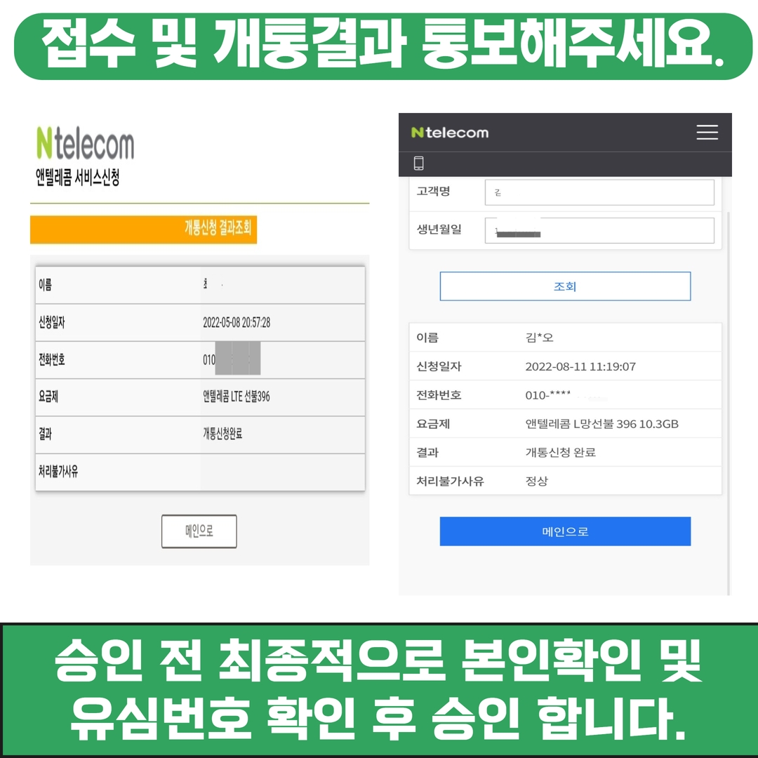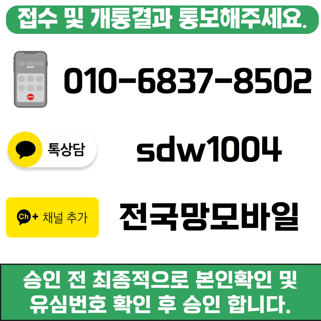 그리고 꼭 아래 연락처나 카카오 채널, 카카오톡으로 결과를 통보해주세요!! 그래야지 기다리지 않으시고 바로 개통 승인부터 요금충전까지 10분 안에 모든 걸진행할 수 있습니다!!