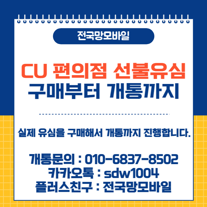 안녕하세요!! 오늘은 CU선불유심으로 선불폰 개통해서 내 명의로 사용하는 방법에 대해서 정보를 알려드리려고 합니다.