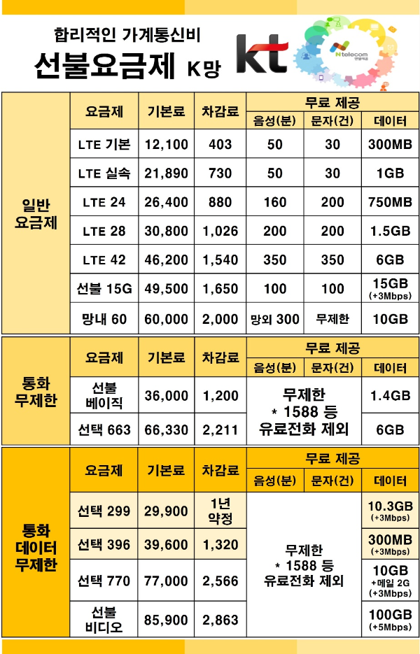 2. 아래 요금제 표를 보시고 마음에 드는 통신사를 선택하신 후 선불유심 구매 및 앤텔레콤 멤버십을 다운로드 받아서 셀프개통을 진행해주시면 됩니다.