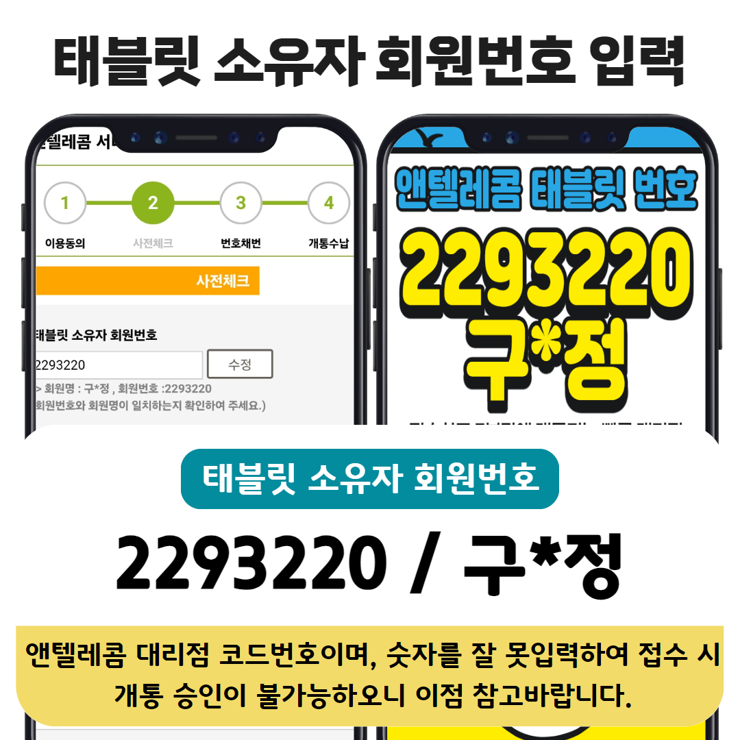 본인인증을 진행해 주시고, 태블릿 소유자번호를 입력해주시면 됩니다. 2862609를 입력 후 조회를 눌러주세요. 그리고 서*원이 보이면 정상적으로 접수가 된 화면입니다.