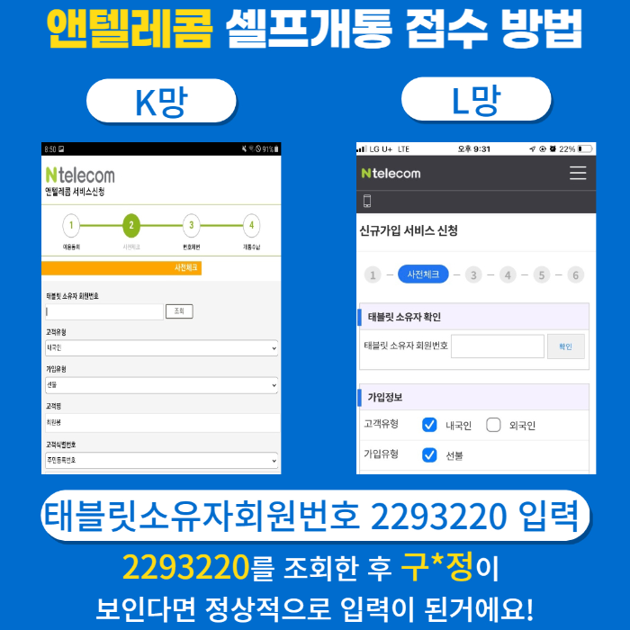 앤텔레콤 멤버십 K망 / L망 셀프개통 접수하는 방법