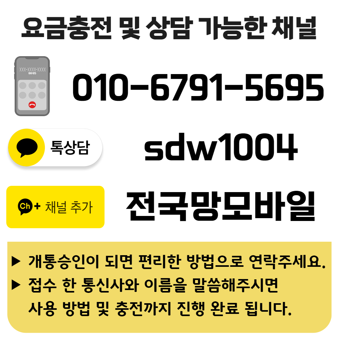 개통이 완료되면 필자에게 카카오채널 등 편리한 방법으로 결과만 통보해주세요. 그러면 요금충전 및 유심 인식시키는 방법 그리고 앤텔레콤 멤버십 앱 설치까지 모두 안내 받으실 수 있습니다.
