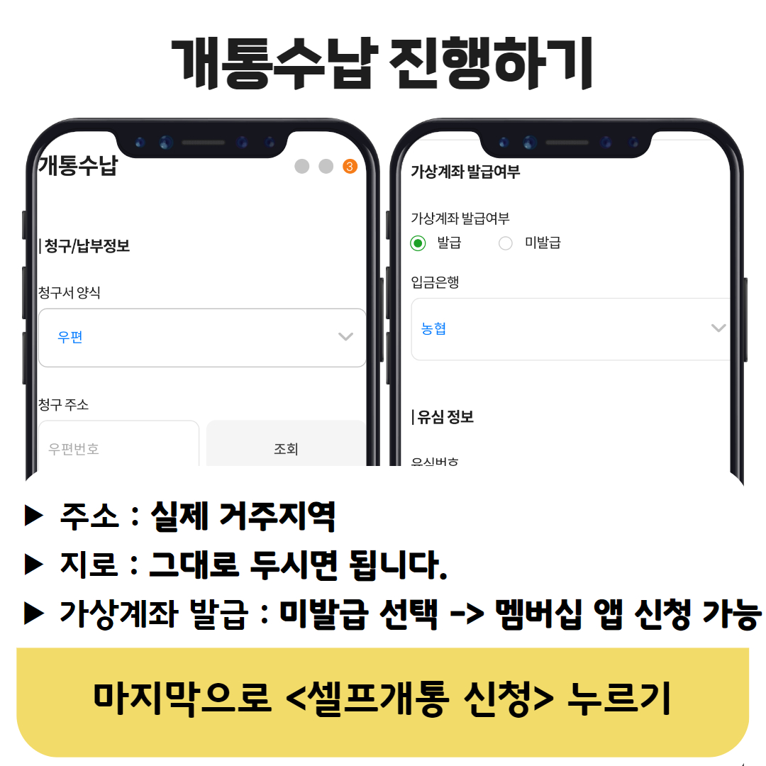 | 실 거주지 | 그대로 두시면 됩니다. | 미발급 후 개통이 완료되면 멤버십 앱에서 별도 신청 가능 |