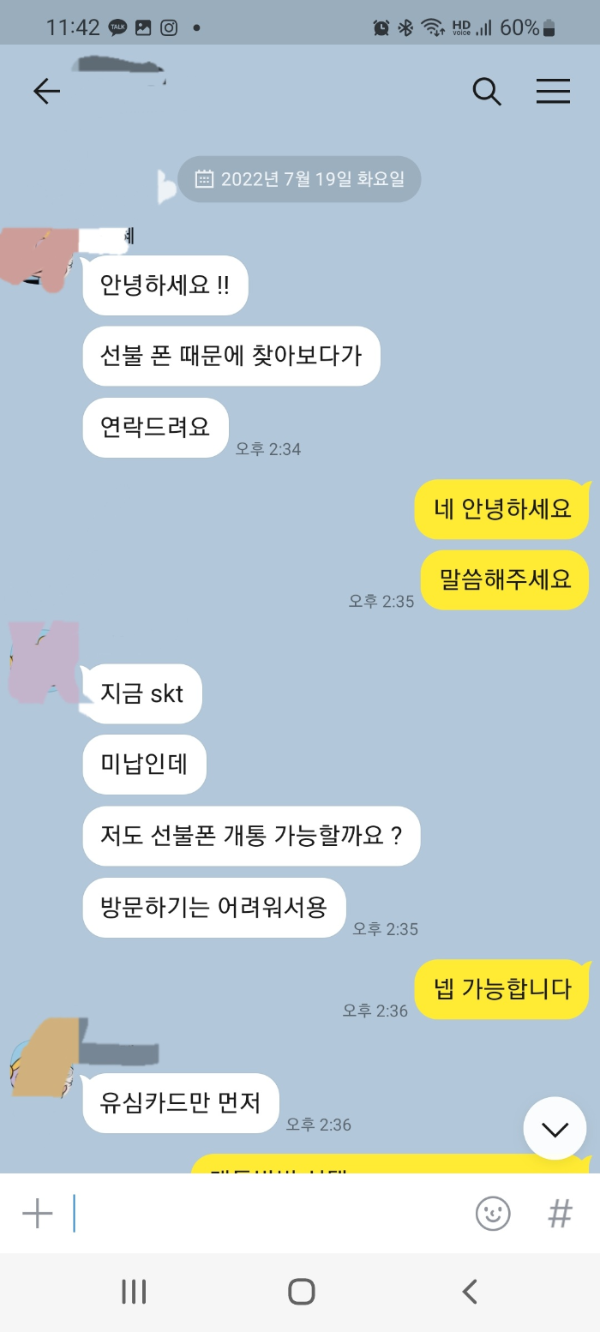 4) 택배개통 : 2번 ~ 3번이 안 될 경우에는 택배로 유심을 보내드립니다. 자세한 건 카톡으로 문의하시면 상세히 설명드리겠습니다!!